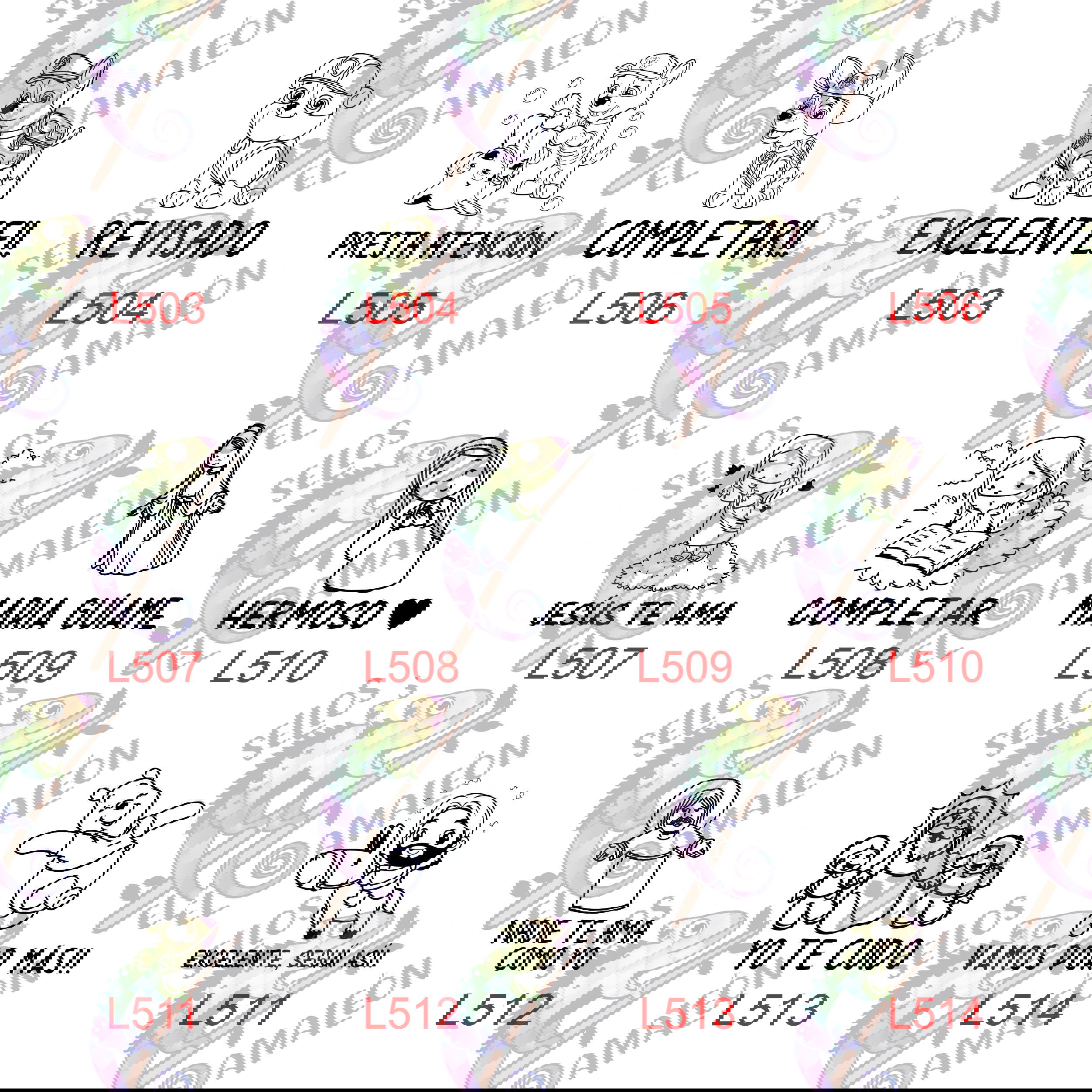 Se puede seleccionar el diseño mostrado en las imágenes, indicando el código que figura debajo de cada modelo.