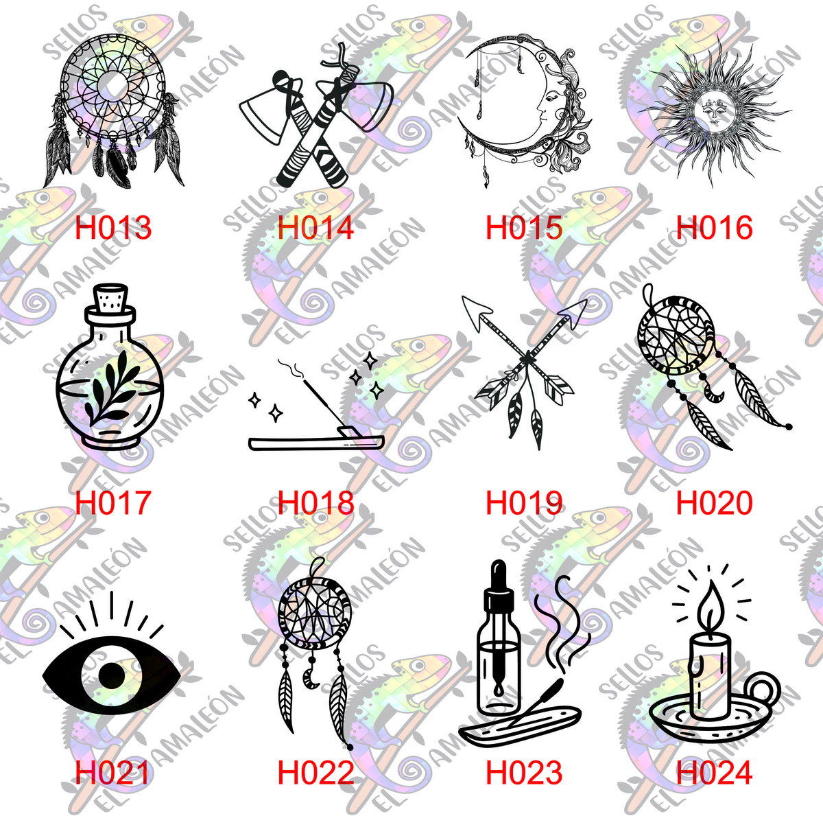 Agregar al pedido los códigos que figuran en cada diseño con letras y números.